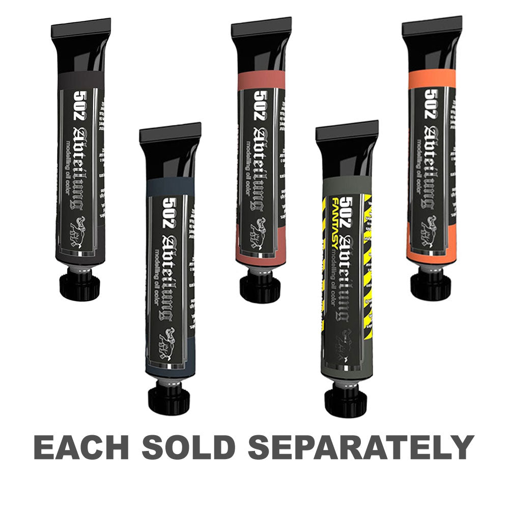 - Abteilung 502 olier indeholder ikke kun en række eksklusive farver for modellerere, men også en speciel formel, hvor andelen af olie til vores høje kvalitet af pigmenterne, styres, hvilket tillader langt mere realistiske finish, der ikke kan efterlignes med almindelig kunst og Håndværksbutikolie maling.
