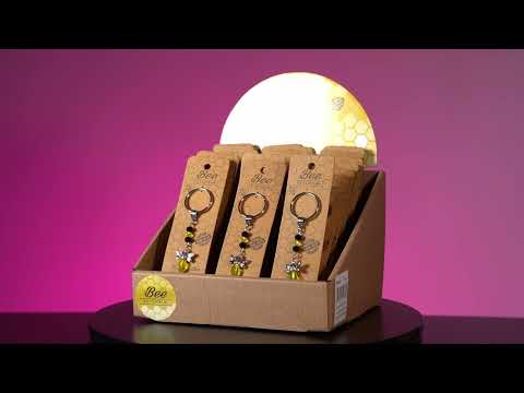 • Har en gul juvel honningbi på en sølvkæde med sorte og gule perler