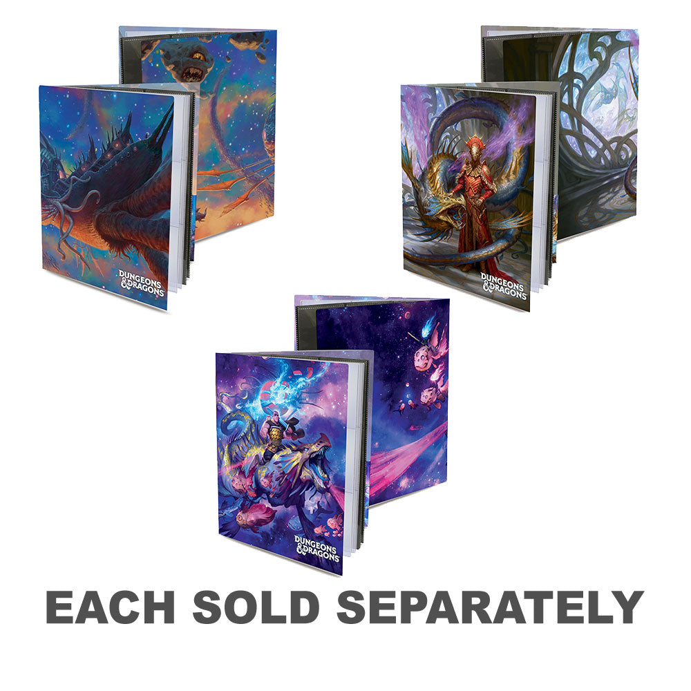 Karakterfolio med klistermærker - Astral Adventurer's Guide - Dungeons & Dragons Cover Series Organiser og gem dine noter, karakterark og stavekort i en karakter folio! Hver Folio har et levende fuldt cover og interne lommer, inklusive 10 enkeltlomme-sider til karakterark og noter, og to 9-lommer sider til stavekort til standardstørrelse. Karakterfolios inkluderer nu et klistermærke, der hjælper med at holde dine eventyr organiseret!