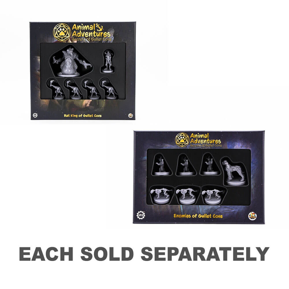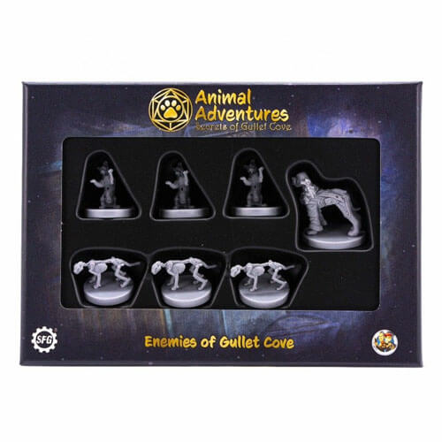 Inde i denne boks finder du seks fuldt samlede, meget detaljerede miniatyrer klar til at male eller spille. Med disse skræmmende skurke kan du udforske den kriminelle underverden af dyreeventyr med hemmelighederne ved Gullet Cove Sourcebook eller bruge dem som fjender i enhver fantasy -kampagne. Den eneste grænse er din fantasi!