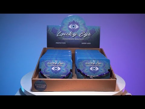 Blå perleret armbånd med en kvast og hamsa -charme.