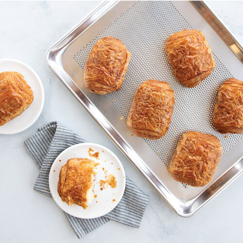 Nordic Wares Naturals perforerede sprød halvlade er lavet af rent aluminium til overlegen varmeledningsevne og producerer ensartede jævnt brunede bagværk hver gang. Derudover er luftstrømmen skabt af denne panes små huller perfekt til, når du vil have en sprød ydre skorpe til dine bagværk som brød, croissanter, middagsruller, pizza, kringler og mere.