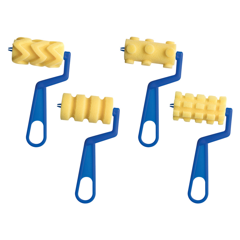 - Set of 4 foam paint rollers with assorted patterns: Enhance your painting projects with a variety of textures and designs. Each roller in the set features a different pattern, allowing you to create a wide range of artistic effects.