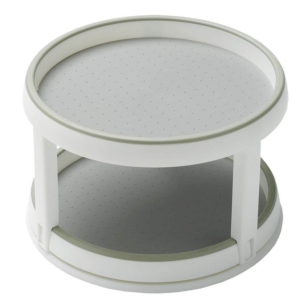 Die breite Basis sorgt für Stabilität des abgestuften Drehtellers, während die rutschfeste Auskleidung die Gegenstände sicher hält. Ideal für Tischplatten, Kühlschränke und Schränke.