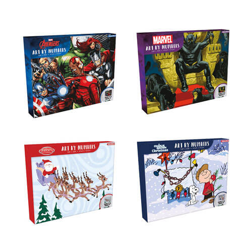 Marvel Black Panther fans will have a blast painting this masterpiece featuring classic Marvel Black Panther imagery. This unique art by numbers kit is pre-printed numbered on 100% finely woven linen pre-stretched canvas on a wood frame & is ready to hang. The box has a handle for easy transport to wherever the inspiration takes you.