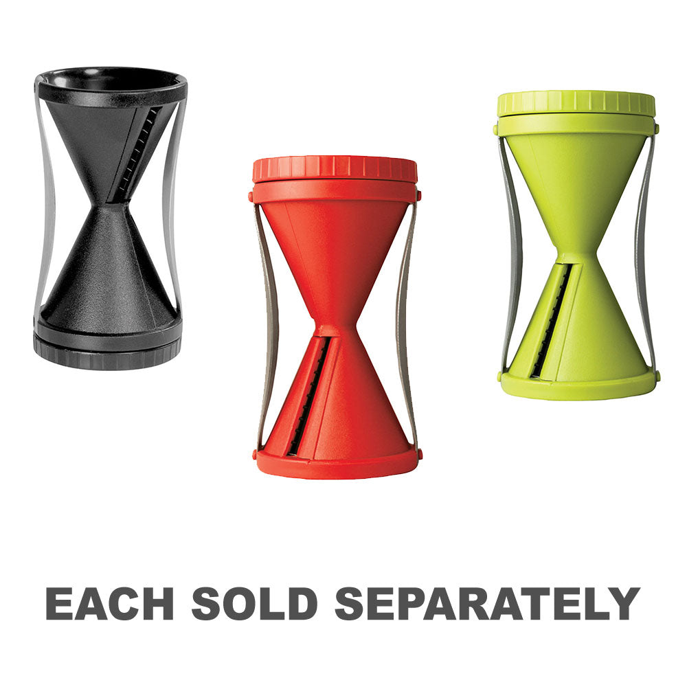 Avanti Veggie Spiretti is a spiral vegetable cutter that turns vegetables into healthy 'spaghetti'. Perfect for healthy eaters and fussy kids. This handy spiral slicer delivers endless julienned "spaghetti' of zucchini, carrot, cucumber, radish and other firm vegetables. Perfect, delicious pasta without the carbs! Simple to use, just place the desired vegetable in the end of the slicer and twist continuously in a clockwise direction. One end is designed for thicker strands and the other end for thin strands.