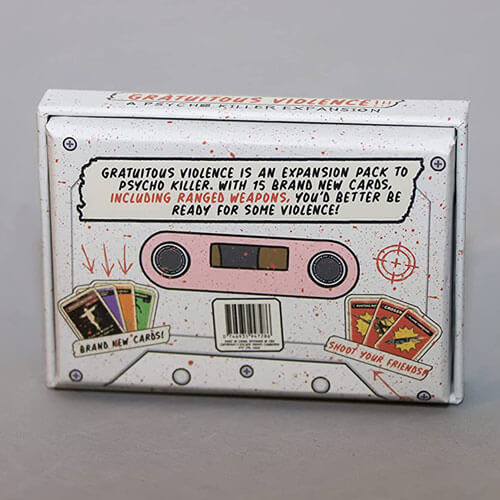 Gratuitous Violence is played just like Psycho killer, but when you are attacked, you can play the new Ranged Weapon cards into other players’ injury piles, instead of your own! With friends like these, who needs Psycho Killers?