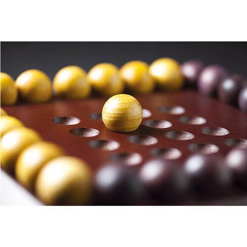 Each player gets fifteen balls, either light or dark, and they take turns placing them on a game board that has sixteen indentations on a 4x4 grid. Once four balls have been placed next to one another in a square, a ball can be placed on top of them. This continues until the fourth level of the pyramid is reached and the last ball placed.