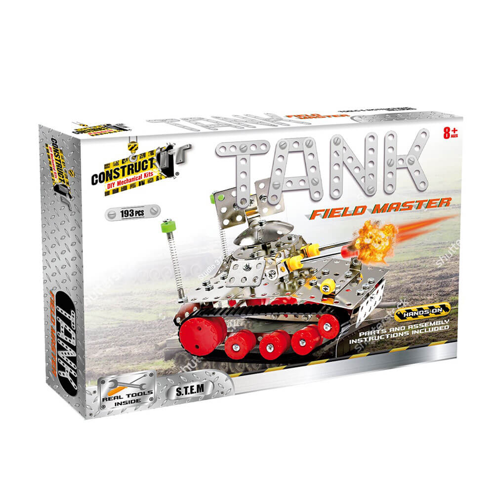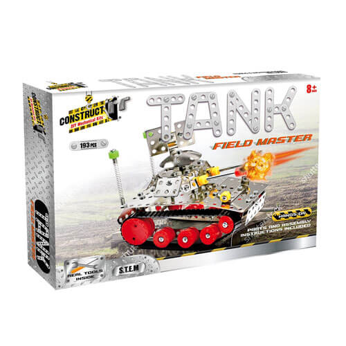 • Incluye 193 piezas, lo que le permite a su hijo construir un tanque de juguete usando herramientas reales