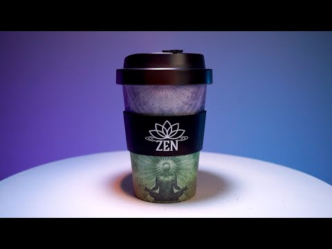 - Matchende sort anti-spill låg og beskyttende silikonebånd med hvidt 'zen' & lotus-symbol.