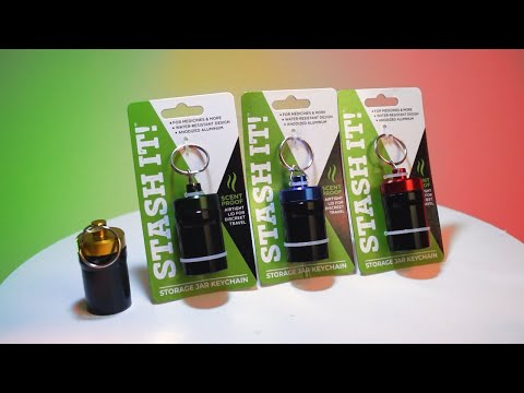 Mini aluminiumsopbevaringskrukke på en praktisk nøglering.