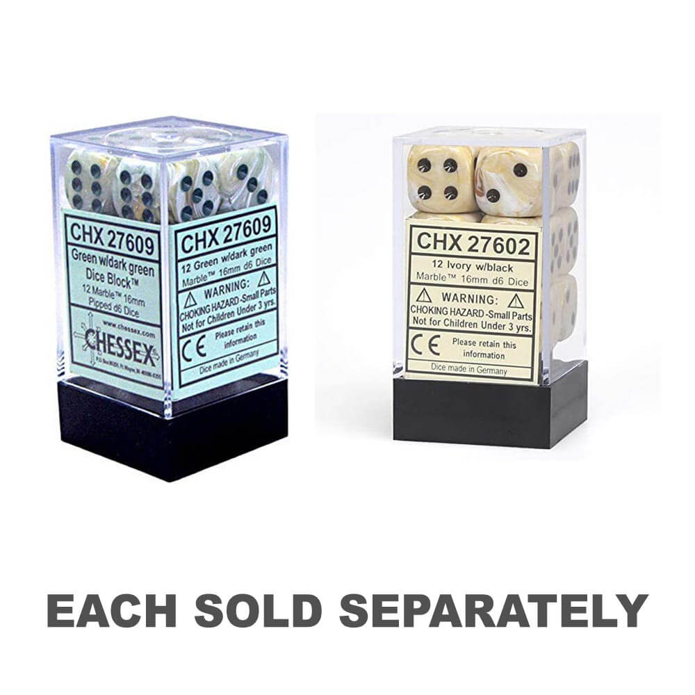 D6 Dice Marble 16 mm (12 dés)