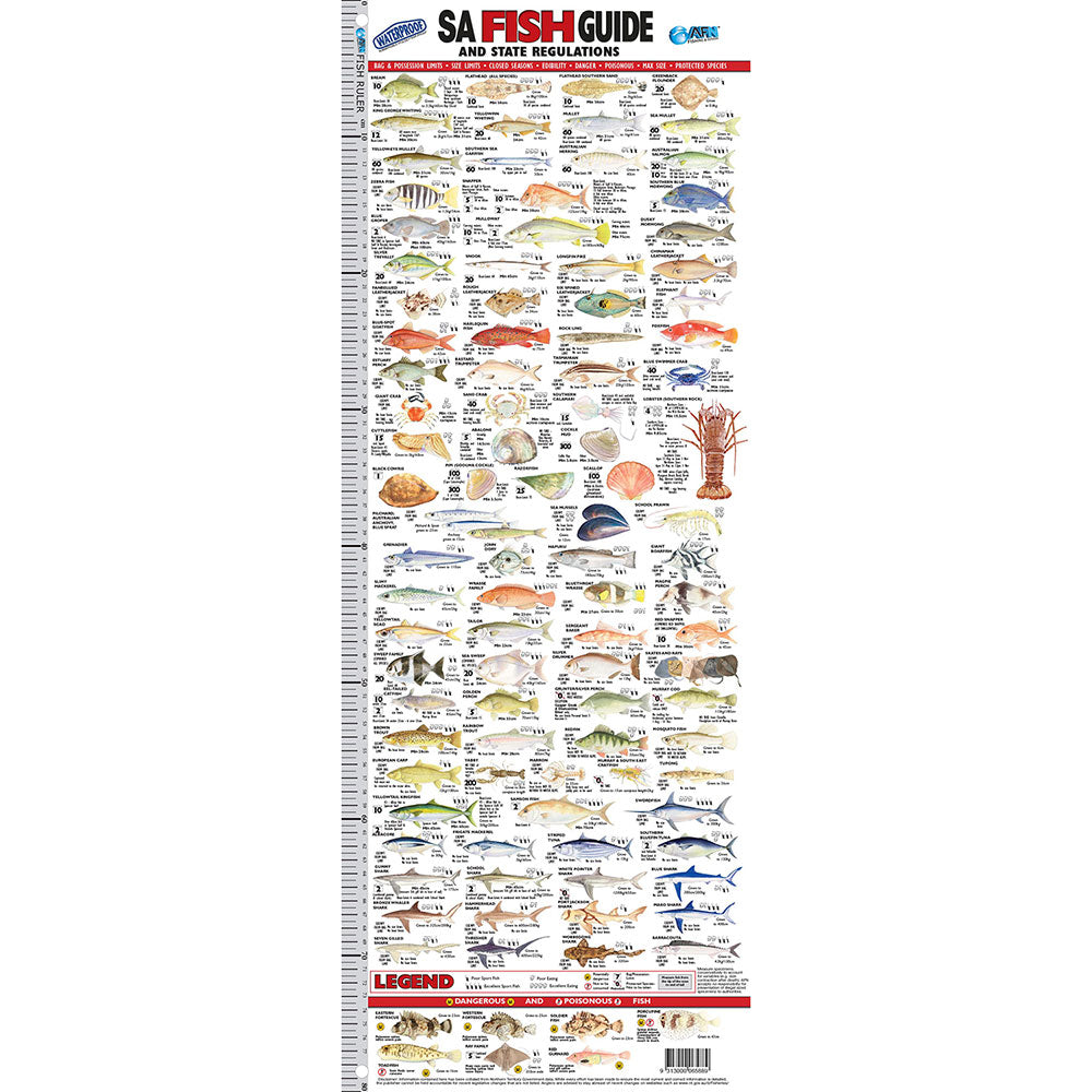 Ces dirigeants sont imperméables, imperméables et à l'épreuve du rôle et montrent tous les poissons locaux qui ont des réglementations qui y sont associés, et bien sûr toutes les espèces les plus populaires.