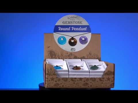 Collana di qualità in pelle di qualità con un ciondolo di gemma rotonda. L'oggetto può variare tra 6 pietre preziose: fluorescente, ematite, Howlite, ametista, quarzo di rosa, occhio di tigre d'oro.