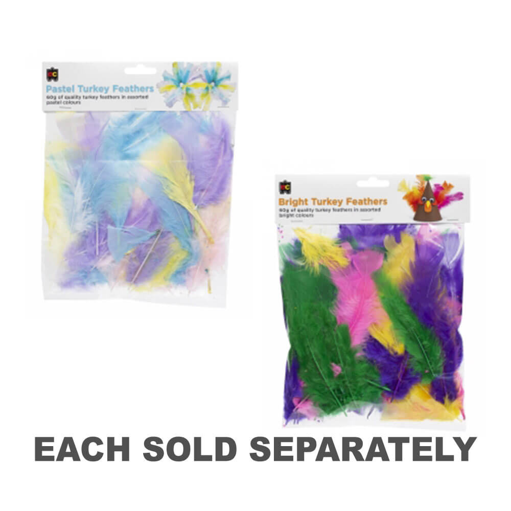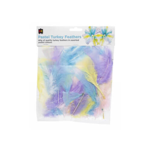I pacchetti di piume di tacchino pastello assortiti sono ideali per tutta una serie di usi artigianali, tra cui collage, creazione di carte, costumi, maschera per decorare e copricapo. Colori pastello in un pacchetto da 60 g.