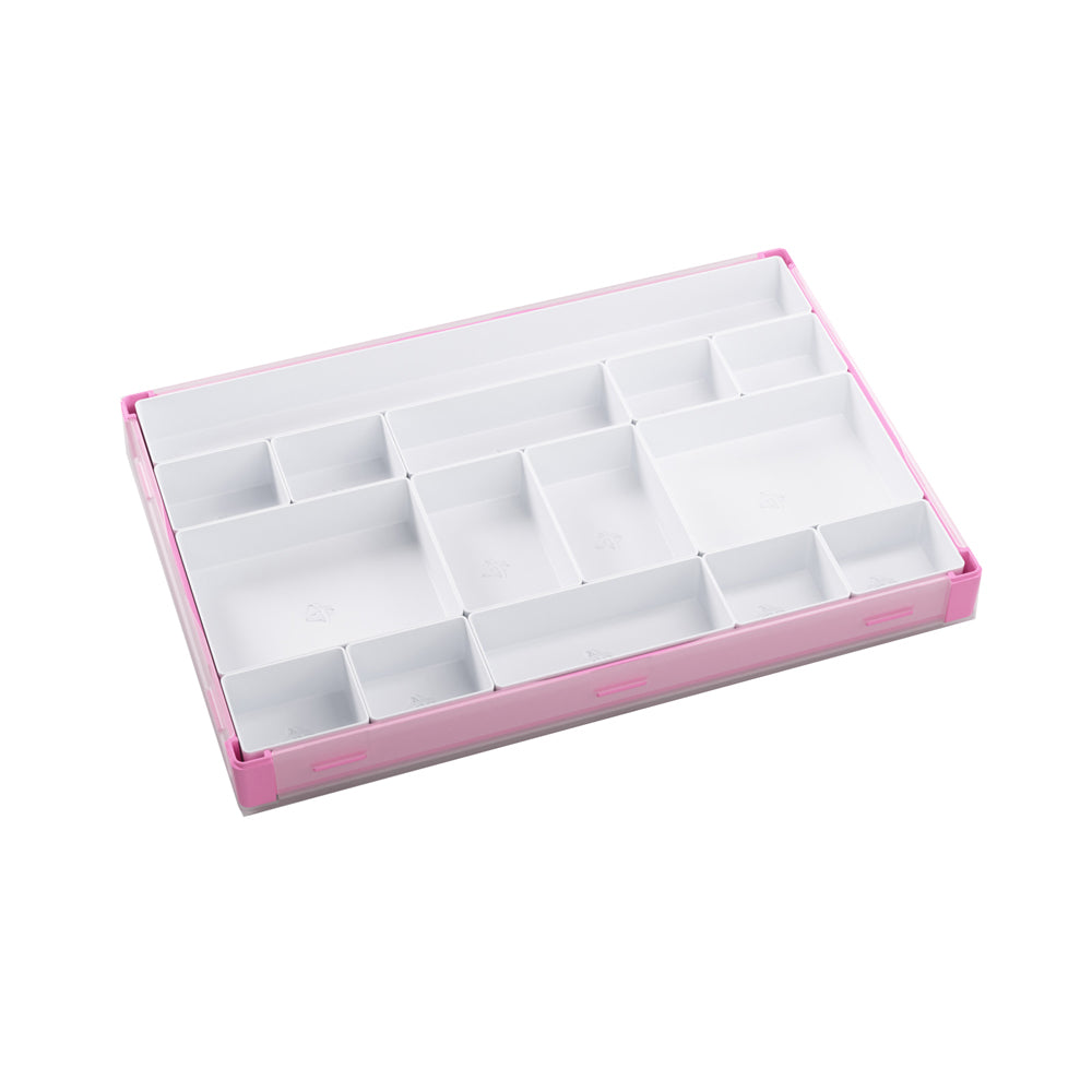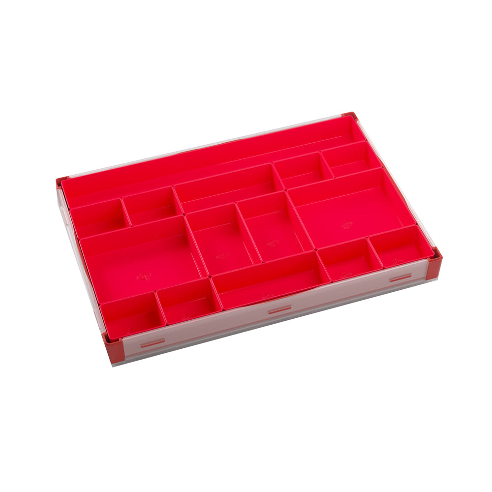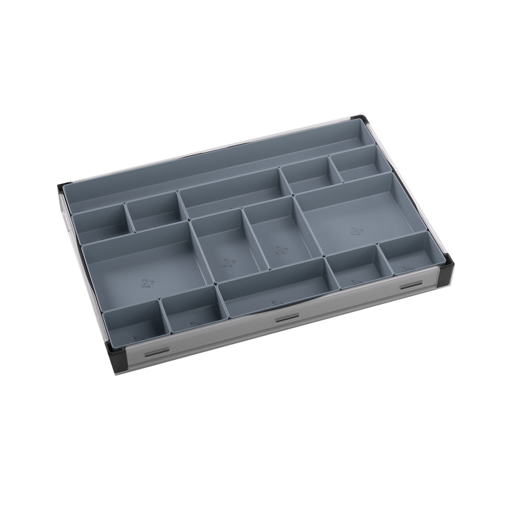 15 removable trays in 5 different sizes