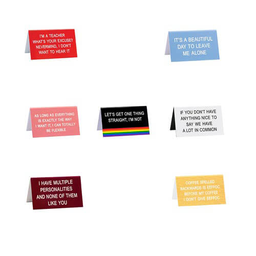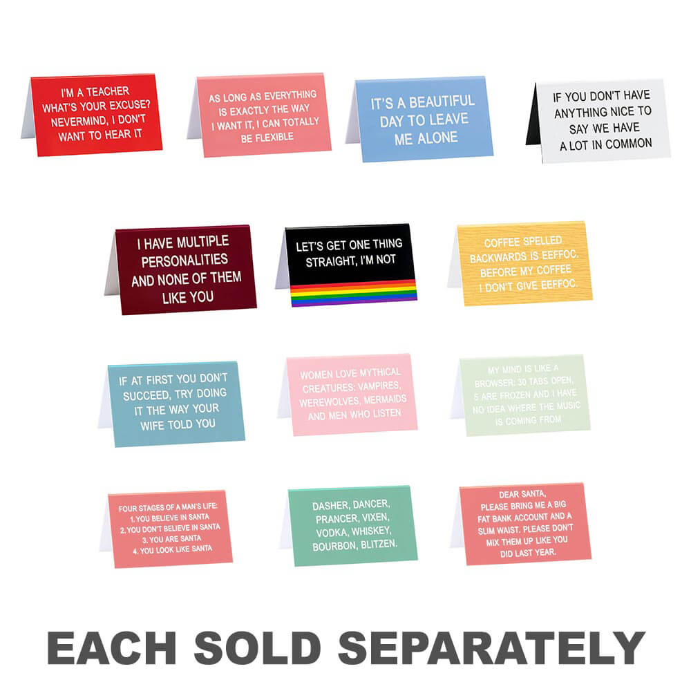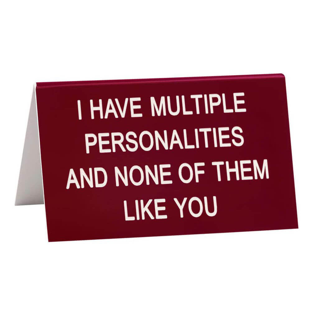 仕事の単調さを壊し、このバーガンディのデスクサインから、何を言ったのかをオフィスに持ってきてください。キャプションには次のように書かれています。「私には複数の性格があり、あなたのようなものはありません」。製品は11.5cm x 7cmです。