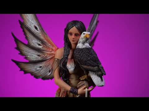 ドリームキャッチャーとイーグルコンパニオンとの妖精の置物。ネイティブアメリカン風のドレスを着ています