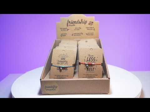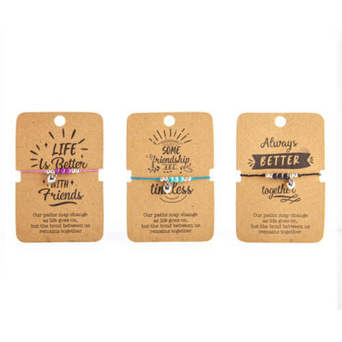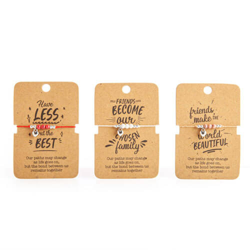 小さな丸いビーズと光沢のあるハートチャームを特徴とする手作りの友情ブレスレット。