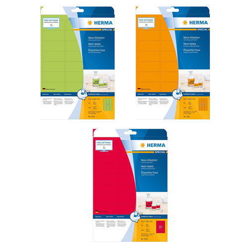 ヘルマラミネスネオンラベルでラベル付けタスクを照らしましょう!このパックには、鮮やかなネオンカラーの20個のA4サイズのラベルが含まれており、それぞれ63.5x29.6mmを測定し、高い視認性と衝撃を提供します。明るい仕上げで、これらのラベルは低照度の条件や混雑した環境で際立っており、注目を集める看板、イベントプロモーション、または創造的なプロジェクトに最適です。ビジネスプレゼンテーション、パーティーの装飾、芸術品や工芸品など、これらの明るいネオンラベルは、すべてのラベル付けのニーズに汎用性と興奮を提供します。 Herma Luminous Neon Labelsで明るく輝く準備をしてください!