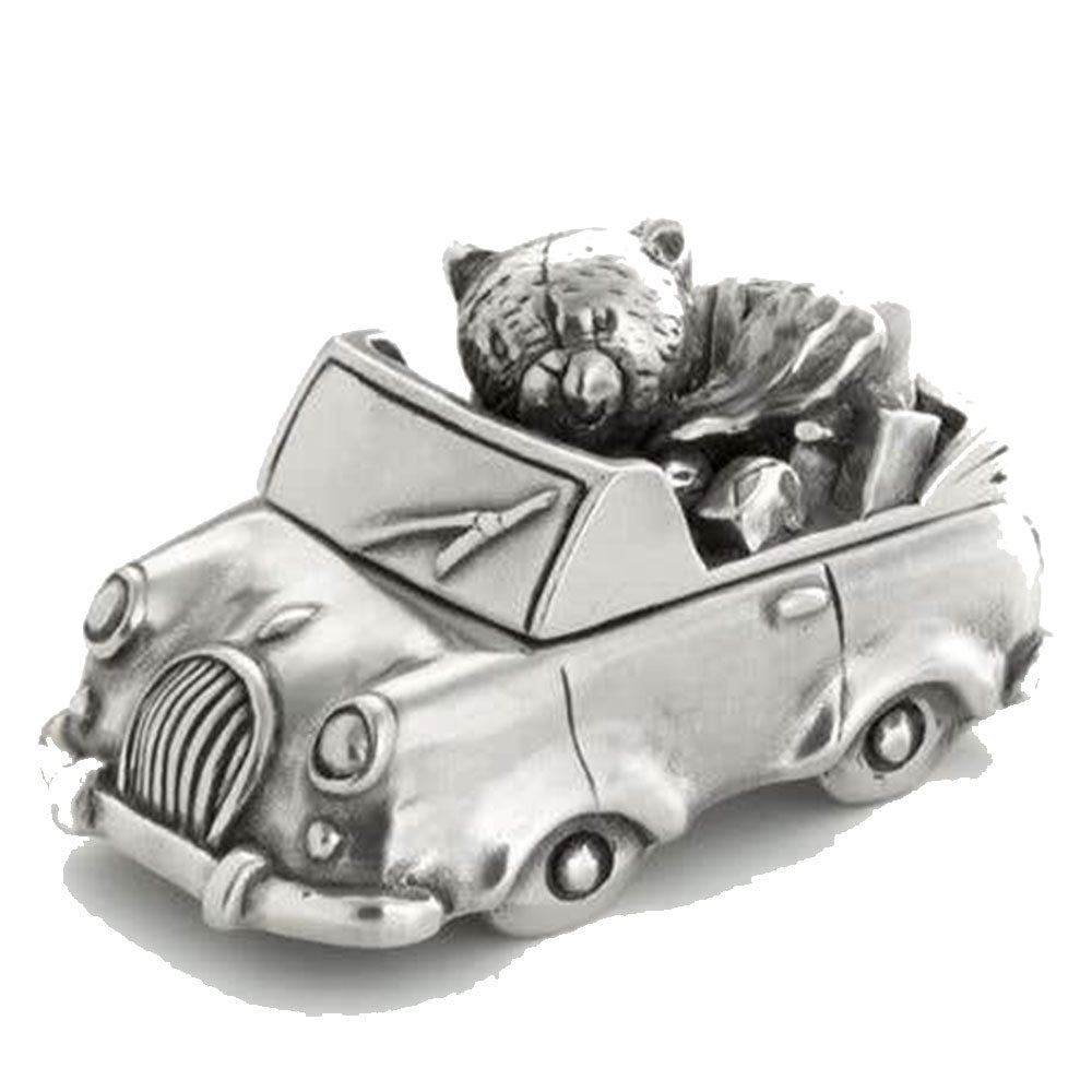 ボーイテディは、プレゼントとともに高く積み上げられたヴィンテージコンバーチブルでピクニックに入り口を作ります。