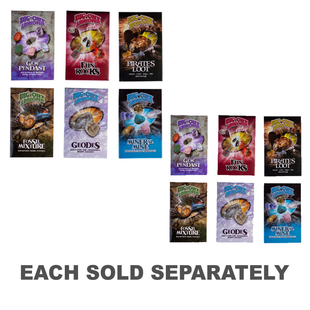 - 1つの掘削ツール、1つのブラシ、コレクション1つのポーチ、1つの拡大ガラス、1つの情報&アクティビティリーフレットが含まれています。