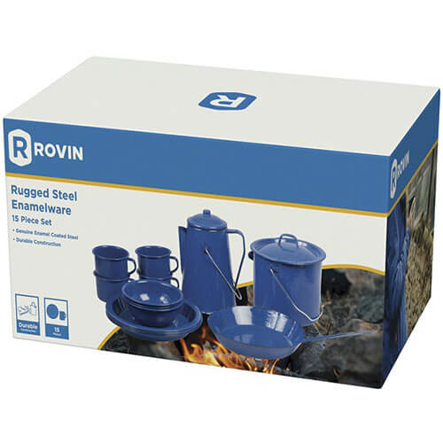Er gaat niets boven het vasthouden van een stomende blikje thee of koffie op een stevige ochtend om te vertellen dat je in de bush bent! (Een beetje zoals de Marlboro -man zonder de sigaretten). Deze set is het echte geëmailleerde stalen basisproduct dat waarschijnlijk meer dan 100 jaar bestaat. De afwerking is een glanzend koninklijk blauw met een vage grijze vlek.