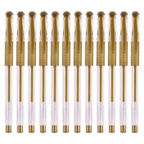 The Basics Gel Pens Gold 12's, a set of fine rollerball gel pens in an opaque gold colour. These pens are perfect for decorative and typography work, adding a touch of elegance and shimmer to your projects.