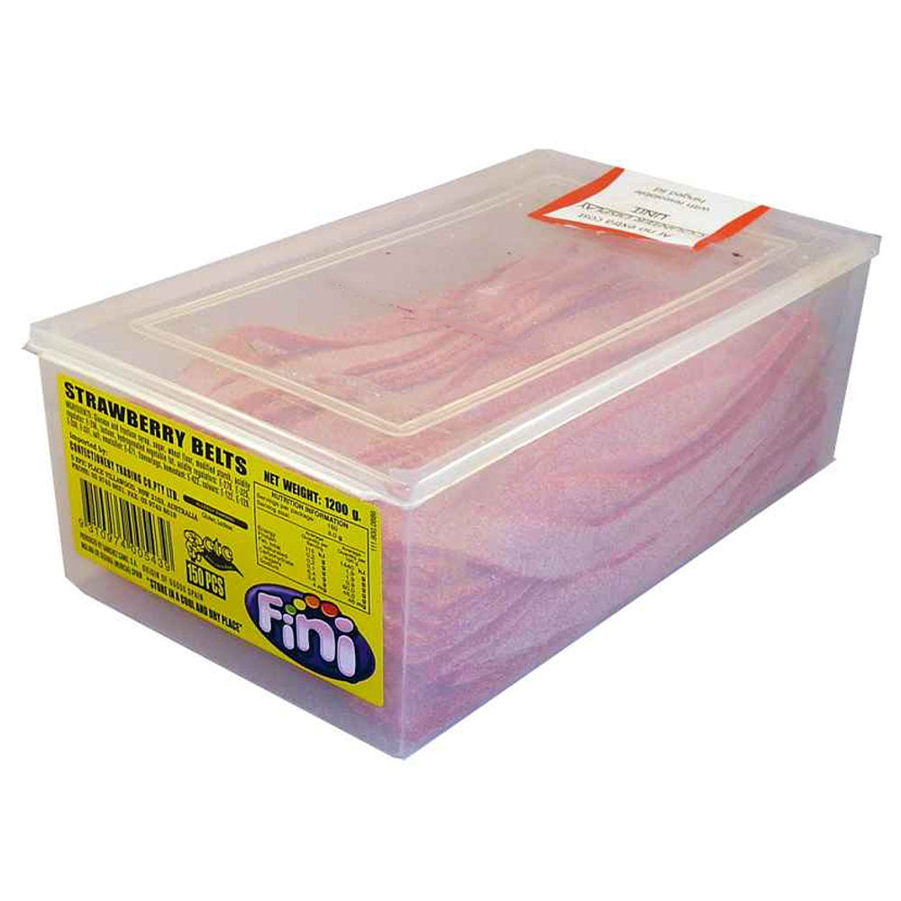 Fini Aardbeienbanden zijn een verrukkelijke en levendige snoeptraktatie die een uitbarsting van zoete aardbeienmaak in elke hap levert. Deze zachte, taaie riemen zijn een geliefde klassieker, perfect voor het bevredigen van je snoepwitkerskerskers.