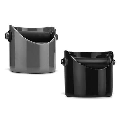 Het heeft een slanke, moderne look en is verkrijgbaar in drie kleuren en twee maten die passen bij uw stijl - capaciteit van 445 ml (rood, grijs, zwart) of 825 ml (alleen zwart). Wanneer het niet in gebruik is, is deze aantrekkelijke koffiekoos met een laag profiel ontworpen om recht in de druppel van uw espressomachine uit de weg te zitten, waardoor de aanrechtruimte of kastruimte wordt bespaard! Bovendien heeft de Coffee Knock-doos een niet-slip rubberen grip op de bodem zodat deze blijft zitten als je het nodig hebt
