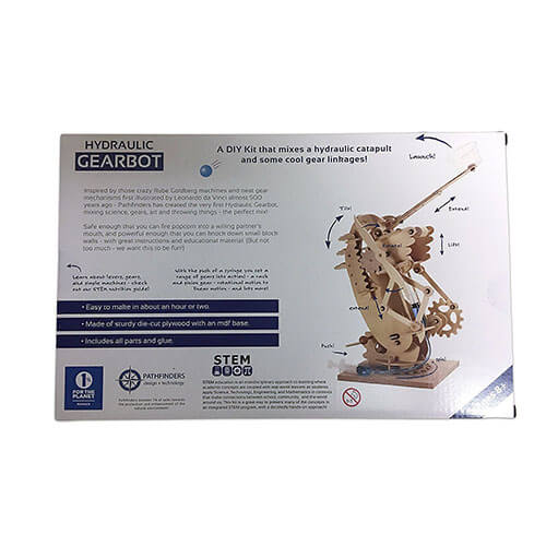 Hydraulische Gearbots zijn niet zo gebruikelijk, maar het leuke van deze is dat het relatief eenvoudig is om te maken en je vrienden zal verbazen. Geïnspireerd door die gekke Rube Goldberg -machines en nette versnellingsmechanismen voor het eerst geïllustreerd door Leonardo da Vinci Bijna 500 jaar geleden, heeft Pathfinders de allereerste hydraulische versnellingsbot gecreëerd. Wetenschap, versnellingen, kunst en gooien van dingen combineren - de perfecte mix! Gemonteerd maat 33 x 66 cm, 13 x 18 inch