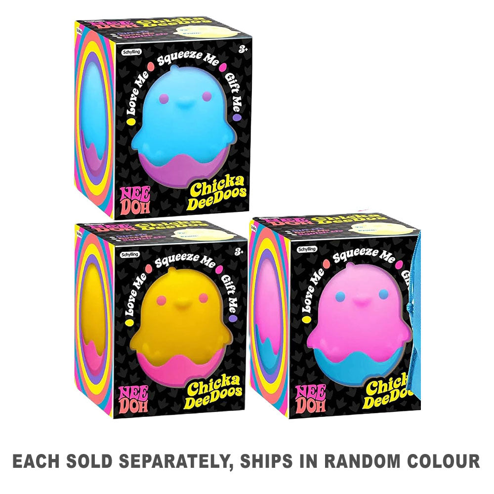 The Nee Doh Chicka DeeDoos are chirpy, cheeky stress toys shaped like squishy little chicks. Perfect for springtime baskets or all-year cheer, they squeak cuteness and squishiness in equal measure.
