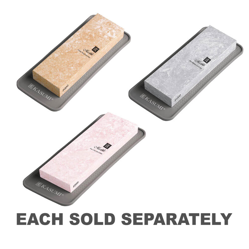 Denne Kasumi Marble Whetstone vil bringe farge og stil inn i kjøkkenet ditt mens du skjerper knivbladet ditt. Kasumi-knives baseblader er laget av V-Gold No.10 (VG-10) rustfritt stål med høyt karbon som er utviklet spesielt for kniver. Disse marmorhvsteinene er designet for å opprettholde Knifes 'skarpere kant lenger.