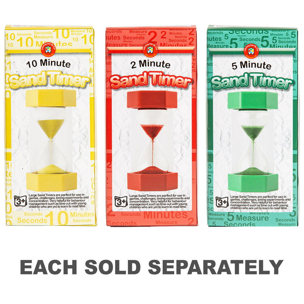 The Learning Can Be Fun Sand Timer Large is an engaging and practical educational tool. This large, colourful sand timer offers an easy-to-understand visual representation of time as sand flows from one chamber to the next.