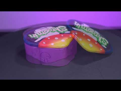 - Har en smilende rød sopp med punny -setningen 'Shroomin'