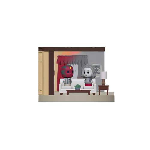 Wanda og Vision har havnet på et underlig sted, og de er ikke sikre på hvordan de har kommet dit. Du kan hjelpe dem med å finne veien ved å legge dem til Marvel -samlingen din som Funko Mini Moment Collectibles. Mini Moments 1950 -tallet - Wanda & Vision har duoen i stuen sin som nyter litt TV -tid sammen, med en gråtonende vri akkurat som showet!