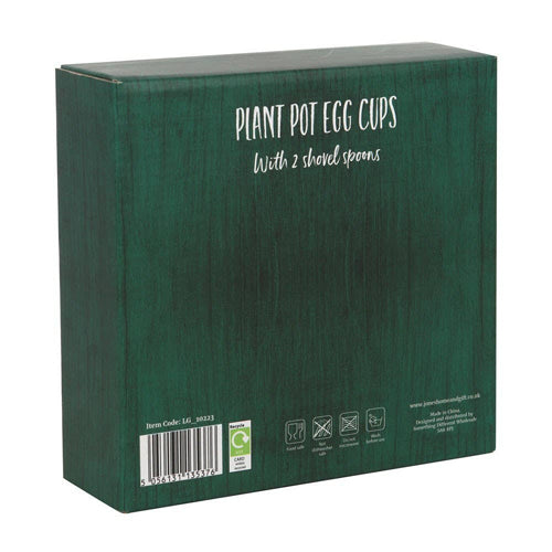 This pair of adorable egg cups comes shaped like mini plant pots and is sure to complete any breakfast table spread. With matching shovel spoons, this unique egg cup set will quickly become a kitchen favourite. Do not microwave. Dishwasher safe. Designed as part of part of the Life in the Garden range of gardening gifts and home decor.