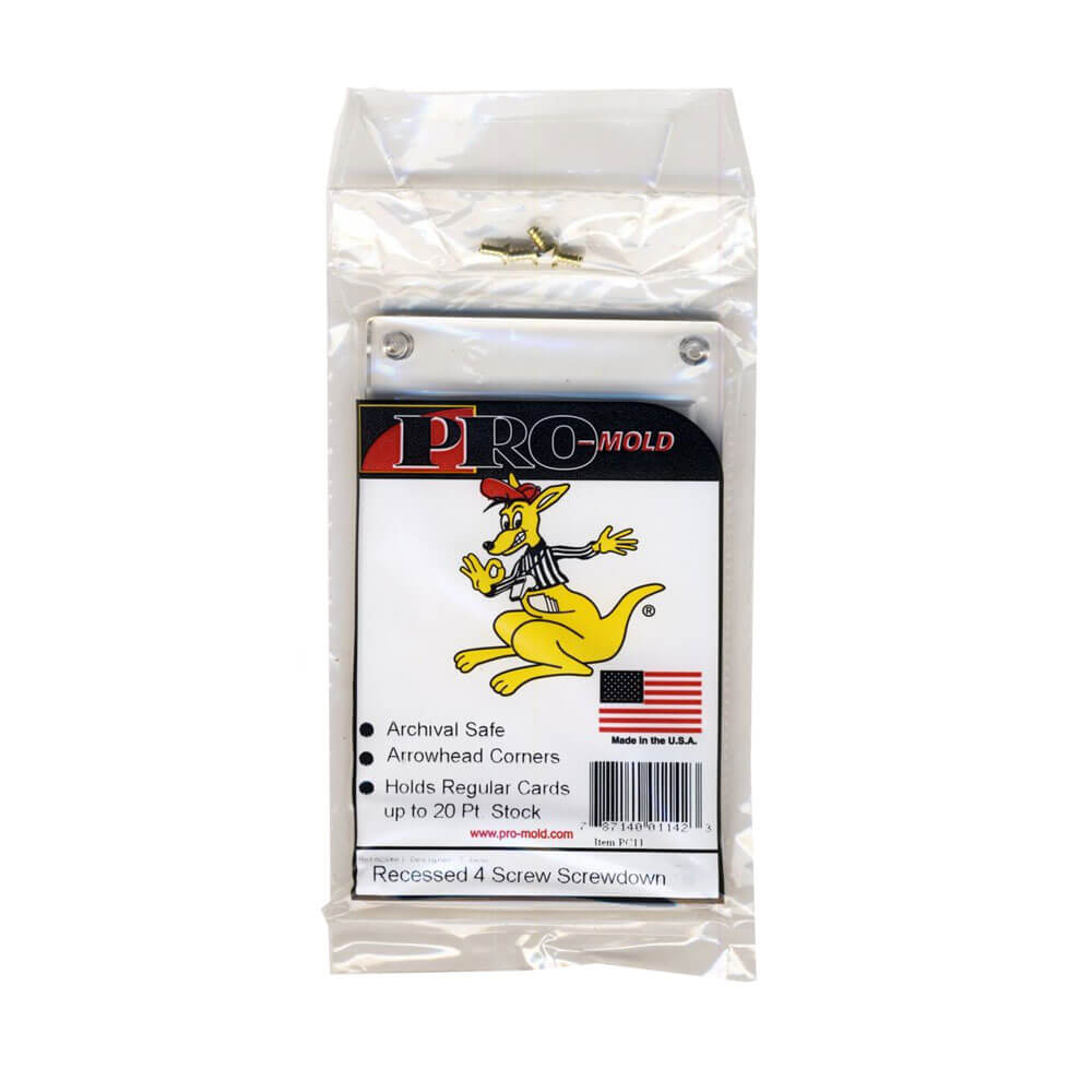 Wymiary zewnętrzne: 3 x 4 7/8 x 1/4 Wymiary wnętrz: 2 1/2 x 3 1/2 x 30 pkt Pro-frankol 4-śrubowy uchwyt został zaprojektowany tak, aby atrakcyjny wyświetlanie jednej karty. W przeciwieństwie do innych 4 śrubowych śrub, ten ma zagłębiony obszar na pokrywce nad kartą, która nadaje karty trójwymiarowy wygląd. Ten uchwyt ma międzybłonione otwory śrubowe, które sprawiają, że można je stosować.