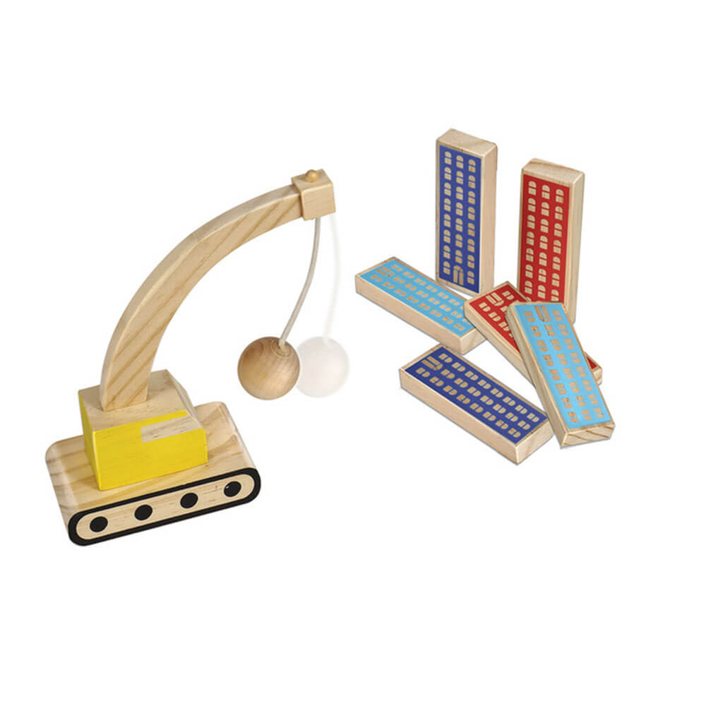 • Dette sæt inkluderer 6 træbygninger og 1 ødelæggende kugle.