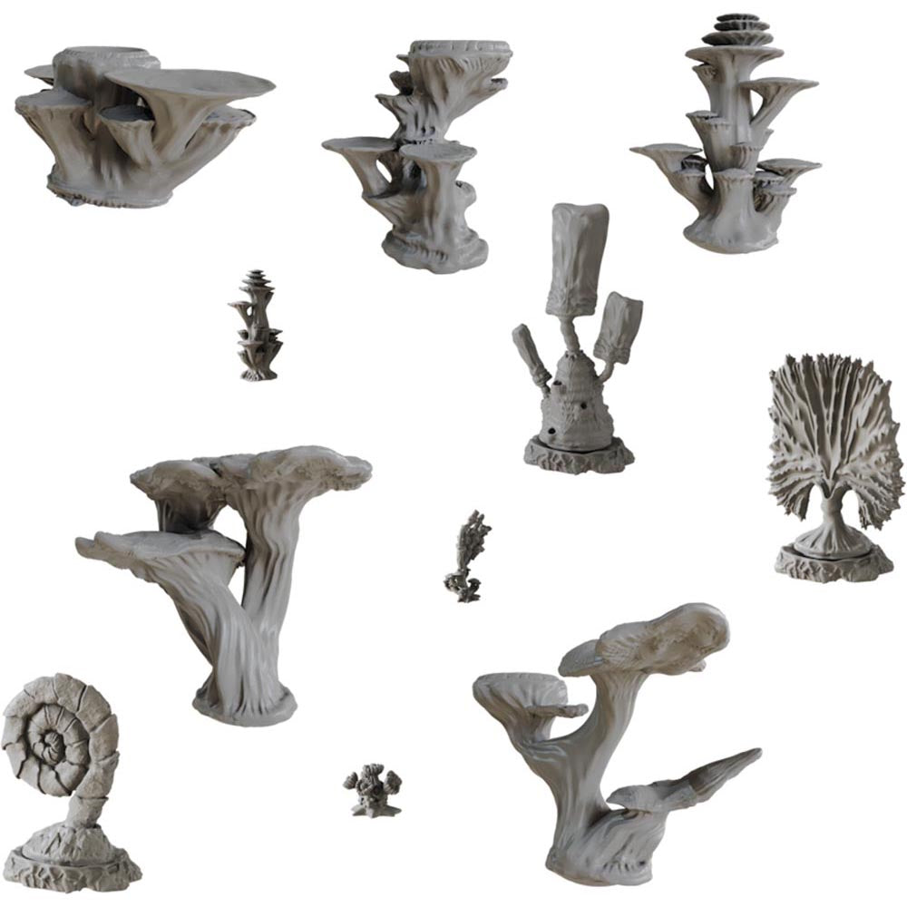 • Udforsk uendelige muligheder i Terraincrate's Otherworld Forest Miniature Set.