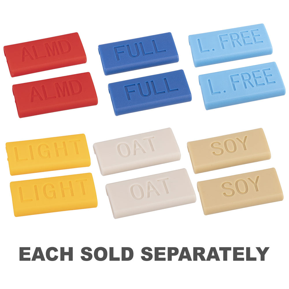 Os clipes, que envolvem a alça dos jarros de leite espumante, permitem que você e sua equipe identifiquem facilmente cada tipo de leite em cada jarro, eliminando a contaminação cruzada e reduzindo o desperdício.