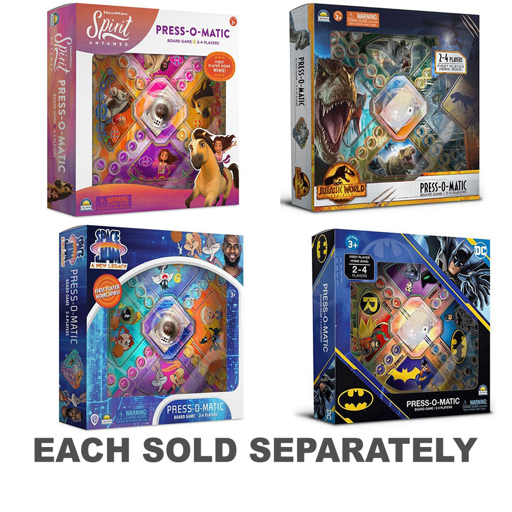 • Junte-se ao Batman em uma emocionante aventura de jogo de tabuleiro Press-O-Matic.