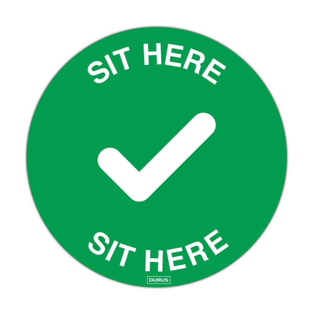 Detta Durus -golvdekal är idealisk för att säkerställa att kunder och besökare följer sociala distansregler medan du är på din verksamhet. Detta PVC-golvdekal är antislip och hållbar, liksom att vara lätt att applicera. Den står "sitta här" och kan användas på de flesta golvtyper inklusive polerade golvskivor, betong, korthögmatta och plattor.